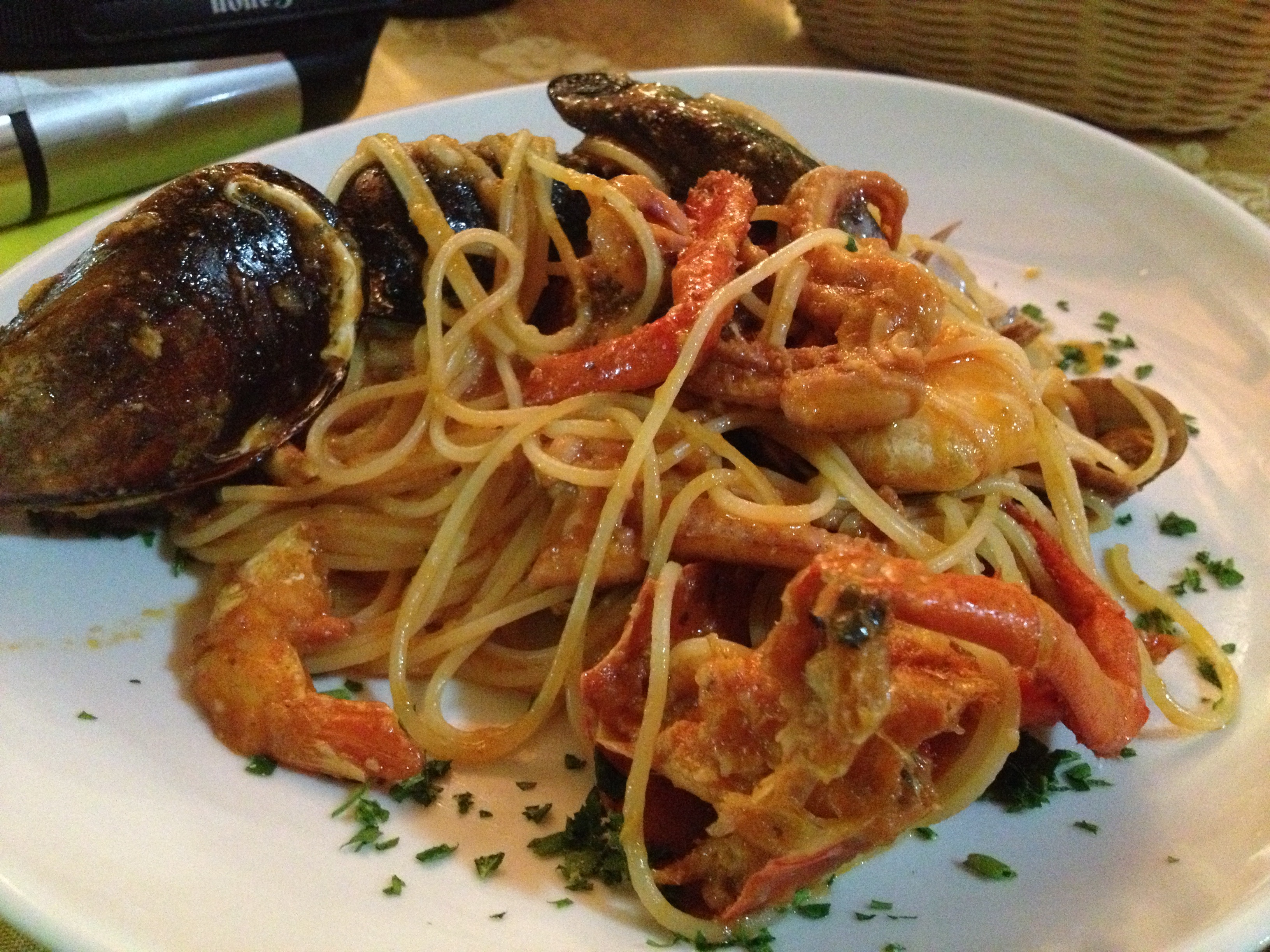 Piza asli Italia biasanya dipanggang langsung di atas bara api. Inilah yang menambah kenikmatan sebuah piza. Spageti yang disajikan diracik dengan hidangan laut yang segar dan keju Sardinia.