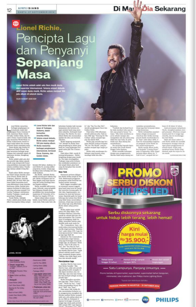 Salah satu kunci sukses Lionel Richie adalah dia memiliki kemampuan menjaga relasi dengan jutaan penggemarnya di seluruh dunia. Itulah yang membuat konser Richie tetap diminati sejak dia terjun ke dunia musik. (LIONELRICHIE.COM)