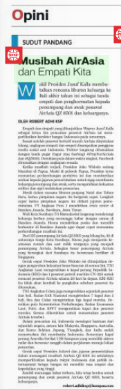 Gerak cepat Presiden Jokowi dan jajaran pemerintahan dalam menangani musibah AirAsia QZ 8501 ini memperlihatkan kepada rakyat Indonesia dan publik internasional betapa bangsa ini memiliki rasa empati dan kepedulian yang tinggi.
