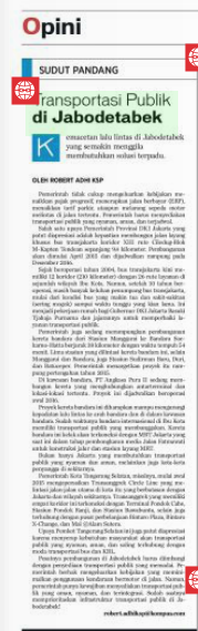 Pesatnya pembangunan di Jabodetabek harus diimbangi dengan penyediaan transportasi publik yang memadai. Pemerintah berhak mengeluarkan kebijakan yang meminimalkan penggunaan kendaraan bermotor di jalan. Namun, pemerintah punya kewajiban menyediakan transportasi publik yang aman, nyaman, dan terintegrasi. Sudah saatnya memprioritaskan infrastruktur transportasi publik di Jabodetabek!