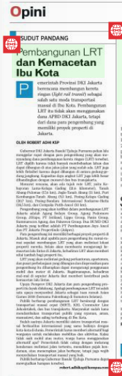 Upaya Pemprov DKI Jakarta dan para pengembang properti itu layak didukung. Apalagi pembangunan LRT ini salah satu upaya menyambut Jakarta sebagai tuan rumah Asian Games 2018 (bersama Palembang di Sumatera Selatan).