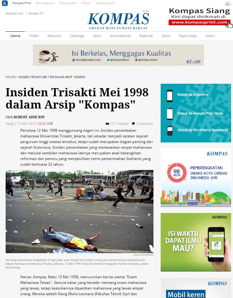 SUMBER: KOMPAS SIANG DIGITAL, KOMPAS PRINT.COM, RABU 13 MEI 2015
