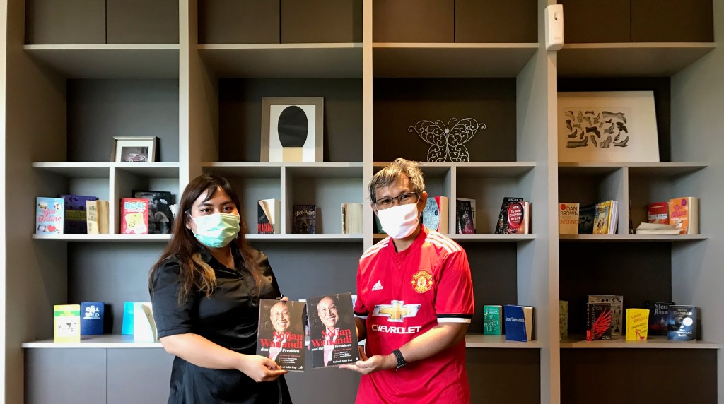 Setelah 30 eksemplar habis dalam beberapa jam, aku kemudian memesan kembali buku “Sofjan Wanandi dan Tujuh Presiden” ini ke PBK. Program berbagi buku masih terus kulakukan. Pada 13 Oktober 2020 yang lalu, aku menyerahkan dua buku Sofjan Wanandi edisi bahasa Indonesia dan edisi bahasa Inggris untuk perpustakaan klub olahraga tempat aku menjadi anggota, yaitu Navapark Country Club.