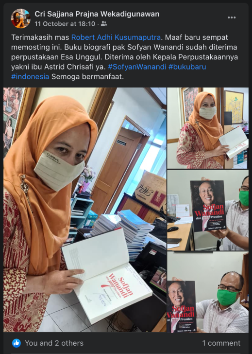 Di Jakarta, beberapa sahabatku meresponnya dengan sangat cepat dan meminta aku mengirimkan buku Sofjan Wanandi itu ke alamat mereka. Sebagian mengatakan mengelola perpustakaan untuk warga di sekitar lingkungan rumah. Sebagian lagi mengatakan akan menyerahkan buku tersebut ke perpustakaan di kantor tempat mereka bekerja.