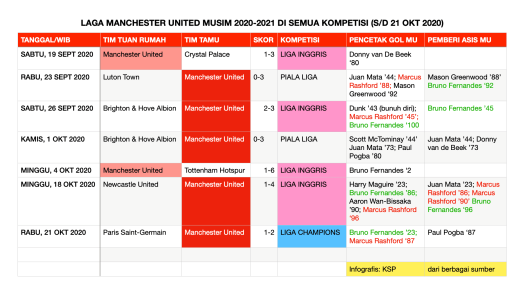 Manchester United meraih kemenangan lima dari enam pertandingan terakhir di semua kompetisi, tetapi pada musim 2020/2021 ini, belum merasakan kemenangan di Old Trafford. Kemenangan terakhir saat tim Austria, LASK, bertandang ke Old Trafford, awal Agustus 2020 lalu.
