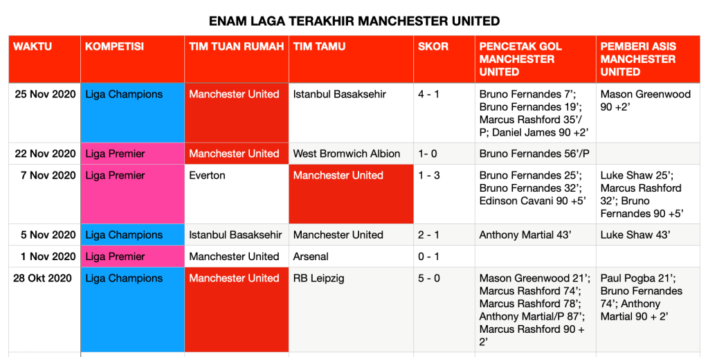 Manchester United akan bertandang ke kandang Southampton dalam laga Liga Premier, hari Minggu (29/11/2020) malam WIB. The Red Devils bertekad melanjutkan tren positif dengan memetik tiga poin setelah meraih kemenangan berturut-turut atas West Bromwich Albion dan Everton di Liga Premier, serta atas Istanbul Basaksehir di Liga Champions.