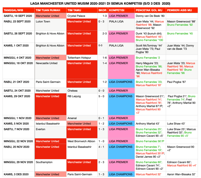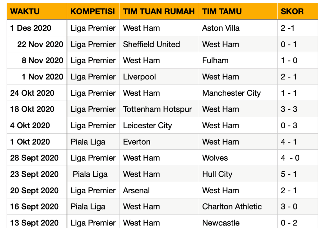 Manchester United akan bertandang ke kandang West Ham United di Stadion London, Minggu (6/12/2020) dinihari WIB. The Red Devils mengincar kemenangan tandang kesembilan berturut-turut di Liga Premier. Jika menang atas West Ham, Manchester United akan masuk empat besar Liga Premier.