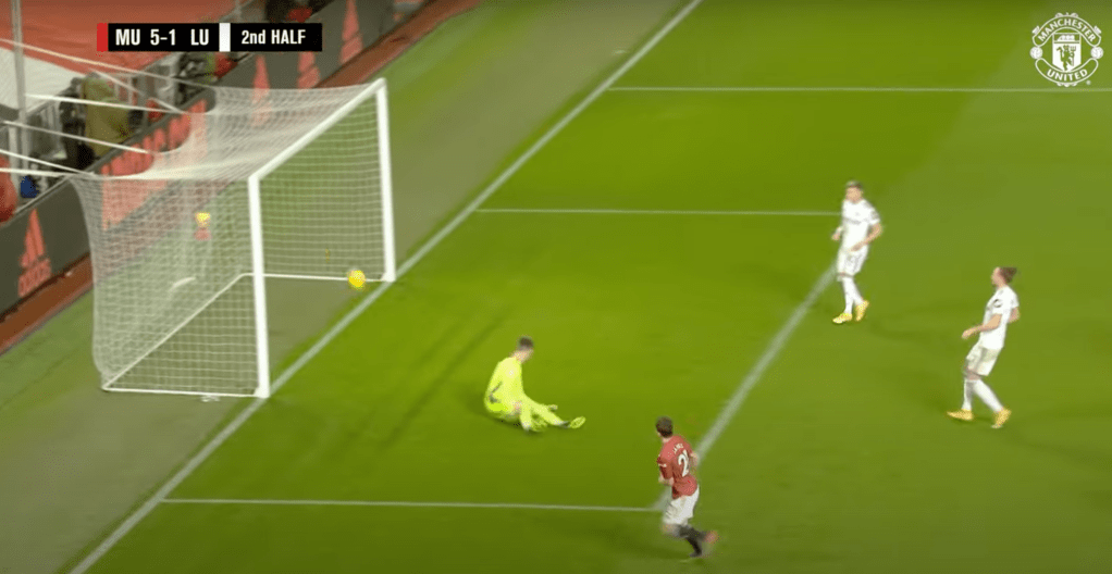 Daniel James yang mencetak gol ke-5 ManUnited pada menit ke-66, melepaskan tembakan melalui kaki kiper Illan Meslier. Pemain internasional Wales ini dengan cemerlang memanfaatkan umpan McTominay dan menutup penampilan yang mengesankan dengan tendangan ke gawang klub yang nyaris mengontraknya pada hari-harinya di Swansea City. Ini merupakan gol pertama Daniel James di Liga Premier sejak membobol gawang Southampton, Agustus 2019.