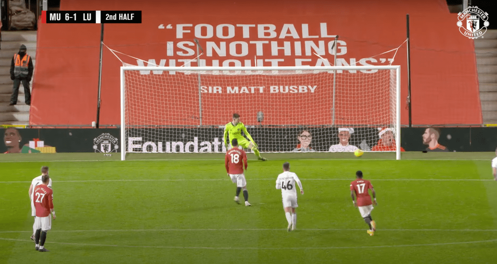 Lima puluh menit kemudian, pada menit ke-70, Bruno mencetak gol ke-6 ManUnited dari titik penalti setelah Anthony Martial dijatuhkan oleh Pascal Struijk di dalam kotak penalti.
