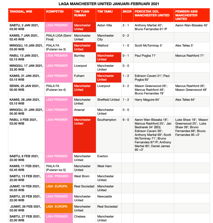 Diolah dari BBC Sports, laman Manchester United, OneFootBall.