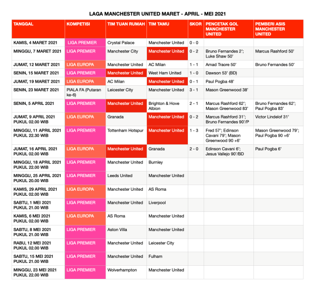 Menjamu Burnley di Old Trafford, Minggu (18/4/2021) malam WIB dalam Liga Premier pekan ke-32, Manchester United ingin melanjutkan tren performa terbaik mereka dengan kepercayaan tinggi. Dua hari sebelumnya, Jumat (16/4/2021) dinihari WIB, Manchester United mengamankan tempat di semi final Liga Europa dengan menggilas Granada 2-0.