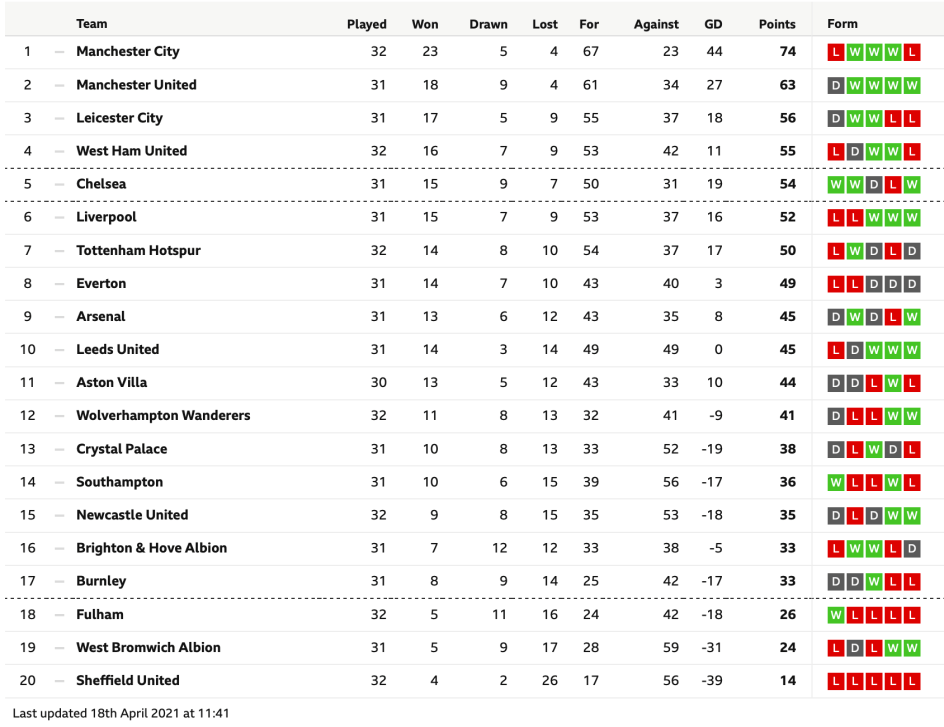ManUnited berupaya memperkecil jarak dengan ManCity, pemuncak klasemen sementara Liga Premier menjadi delapan poin. ManCity baru saja kalah dari Chelsea dalam semi final Piala FA, Sabtu (17/4/2021) malam WIB. Kemenangan MU atas Burnley akan menjauhkan jarak dengan Leicester City di peringkat ketiga menjadi 10 poin — yang pada Senin (19/4/2021) dinihari WIB berhadapan dengan Southampton dalam laga Piala FA.