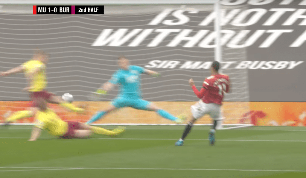 Pada injury time, Donny van de Beek yang menggantikan Marcus Rashford pada menit ke-84 memberi asis kepada Edinson Cavani yang berdiri bebas di depan gawang. ManUnited puas dengan kemenangan 3-1 atas Burnley.