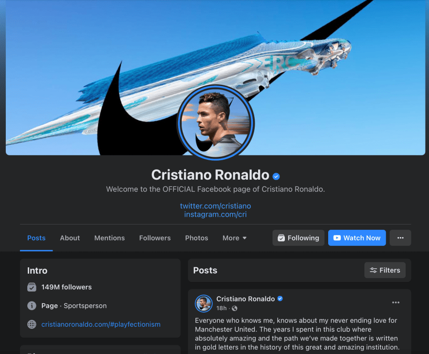 Cristiano juga paling banyak diikuti di Instagram. Saat menunggah di Instagramnya, 336 juta pengikut Cristiano membaca unggahannya di feed mereka — jumlah ini lebih dari seluruh populasi Amerika Serikat!