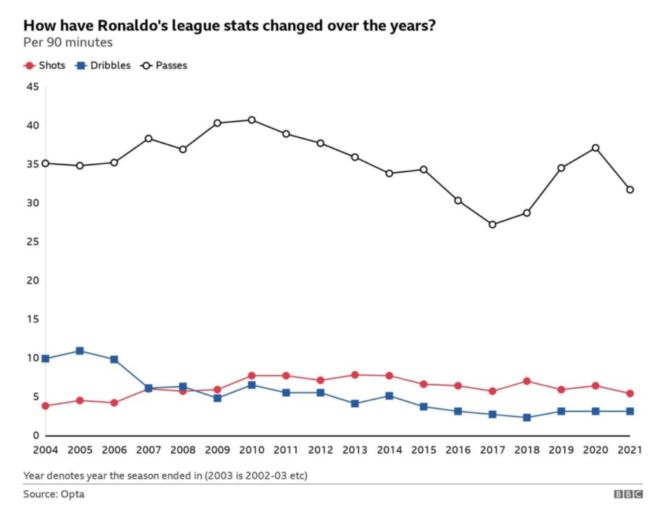 Pencapaian ini menunjukkan Portugal dinilai hebat sepanjang masa dalam dunia sepakbola. Cristiano sudah menjadi pencetak gol terbanyak di turnamen besar klub sepakbola, di Piala Eropa/Liga Champions, dan berkontribusi pada lima gelar juara yang dicapai. Mantan penyerang Real Madrid ini juga pencetak gol terbanyak dalam sejarah Kejuaraan Eropa (14) dan gabungan Piala Eropa dan Piala Dunia (21).