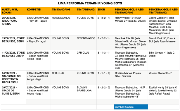 Manchester United pernah dua kali menghancurkan Young Boys dalam laga kandang dan tandang di grup penyisihan Liga Champions pada 2018. Saat ini Young Boys mengalami perkembangan pesat. Akhir pekan lalu, tim asal Swiss ini mengalahkan FC Zurich 4-0 dalam liga domestik.