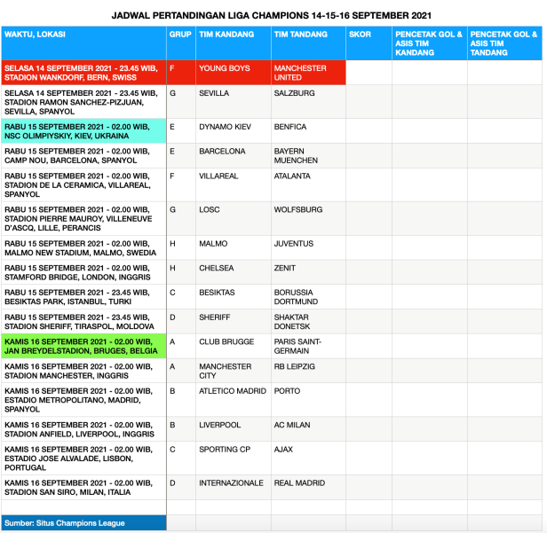 Catatan: Tulisan ini diperbarui Selasa (14/9/2021) menjelang tengah malam WIB, setengah jam sebelum pertandingan dimulai (dengan menambahkan Instagram Manchester United tentang susunan pemain yang diumumkan resmi)