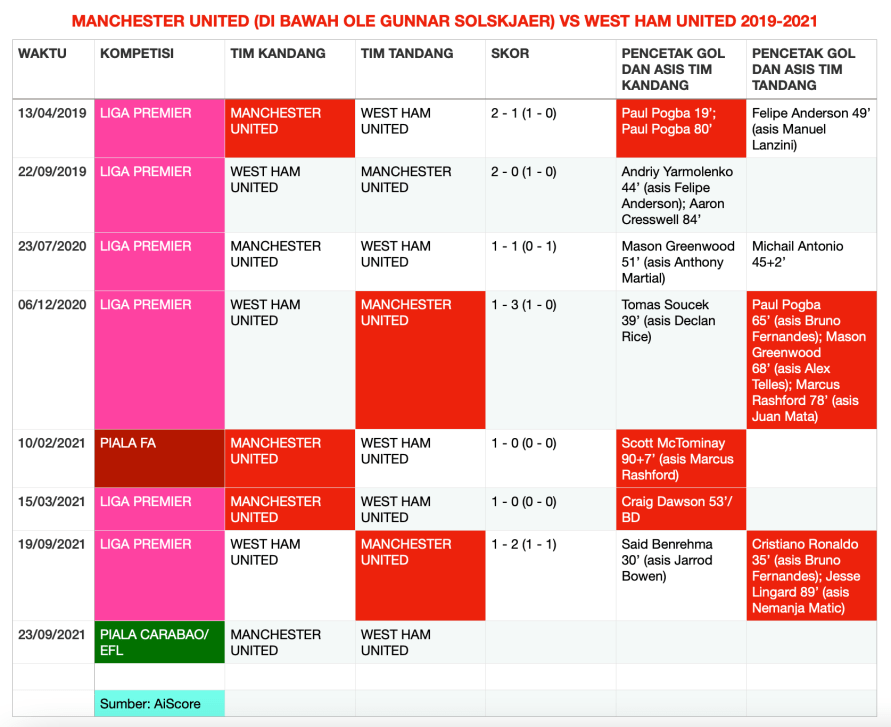 Catatan: Tulisan ini diperbarui Kamis (23/9/2021) dinihari WIB dengan susunan pemain yang pasti (dari Instagram Manchester United).