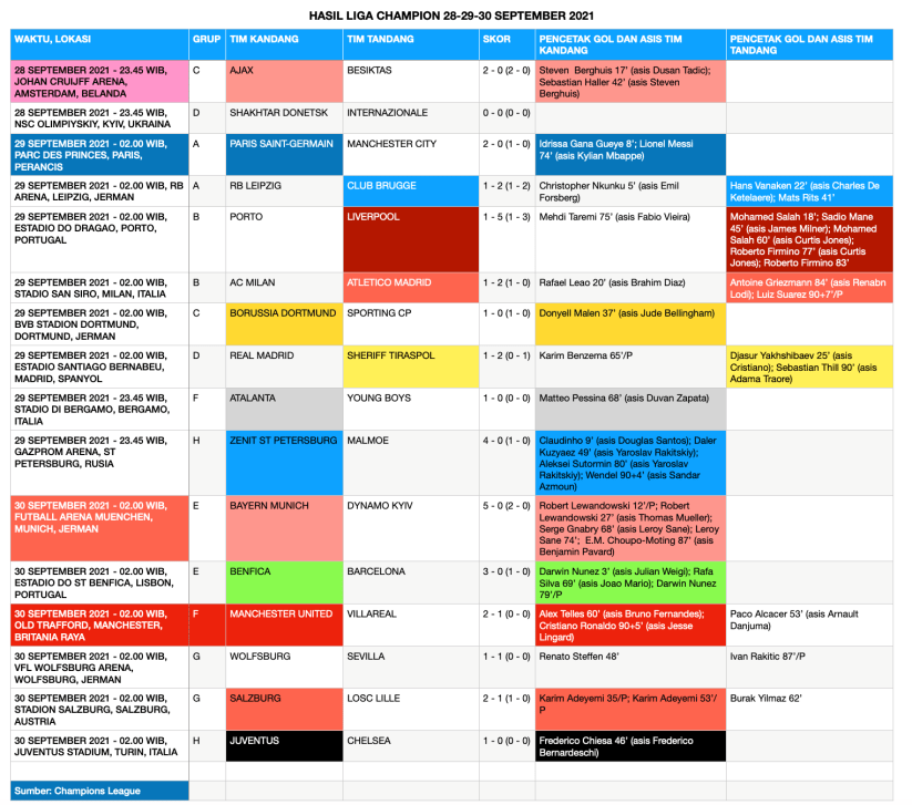 Manchester United akan menjamu Atalanta di Old Trafford, Kamis 21 Oktober, dan bertandang ke kandang Atalanta, 3 November. Setelah itu MU akan ke kandang Villareal pada 24 November, dan menjamu Young Boys pada 9 Desember mendatang.