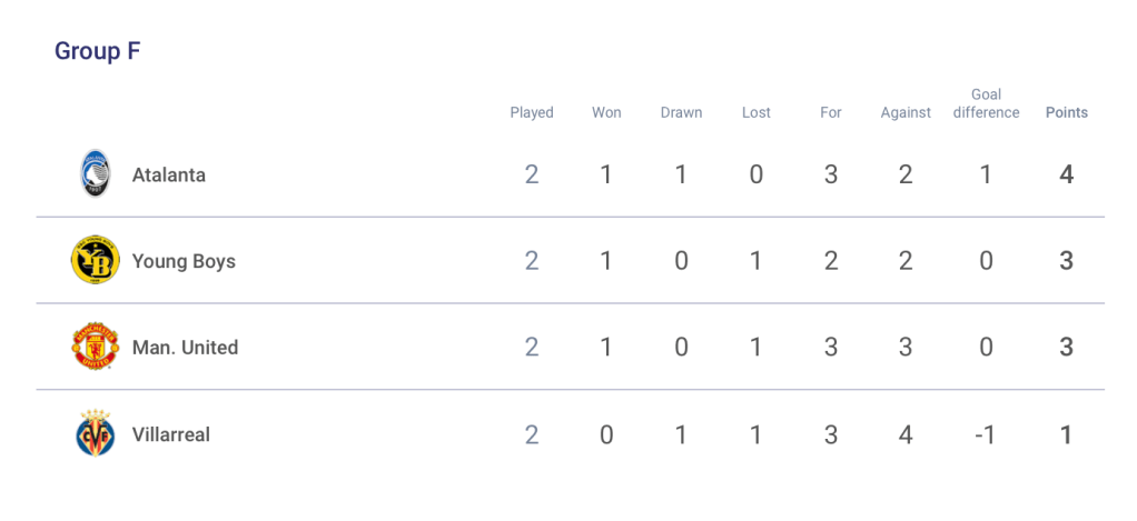Kemenangan atas Villareal menghidupkan peluang Manchester United lolos ke babak berikutnya. Saat ini di Grup F, Atalanta berada di posisi puncak dengan 4 poin setelah menang 1-0 atas Young Boys. Adapun Young Boys dan Manchester United sama-sama mengoleksi 3 poin. Villareal di posisi terbawah dengan 1 poin, hasil imbang dengan Atalanta di laga pertama.