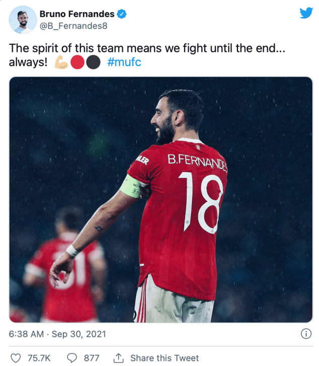 “Saya selalu merasa bisa memenangkan pertandingan. Ketika mereka mencetak gol lebih dulu, saya merasa kami bisa membalikkan keadaan. Setelah gol Alex Telles, dorongan dari penggemar luar biasa. David De Gea juga melakukan penyelamatan luar biasa. Dan akhirnya Cristiano membantu kami lagi,” ungkap Bruno Fernandes.