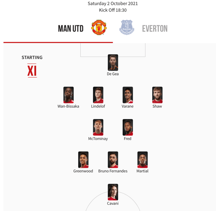 Dalam waktu kurang dari 72 jam setelah menjamu Villareal di Old Trafford di Liga Champions — yang berakhir dengan kemenangan dramatis 2-1, Manchester United kembali ke Liga Premier, kali ini akan menjamu Everton dalam pekan ketujuh, Sabtu (2/10/2021) malam WIB. Edinson Cavani menjadi andalan The Red Devils untuk memimpin lini depan dan meraih tiga poin penting di kandang. Cristiano Ronaldo di bangku cadangan.