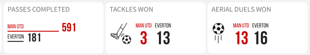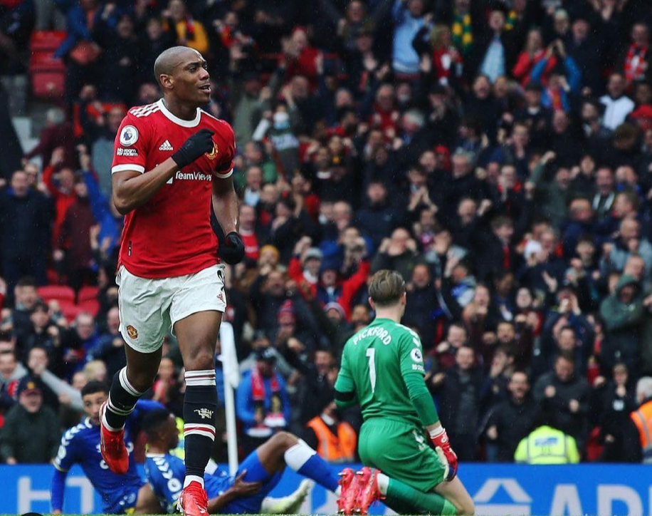 Anthony Martial akhirnya mencetak gol pada menit ke-43, setelah menerima asis dari Bruno Fernandes, yang membawa MU unggul sementara. Bagi Martial, itu gol pertamanya pada musim ini dan golnya ke-5 ke gawang Everton.