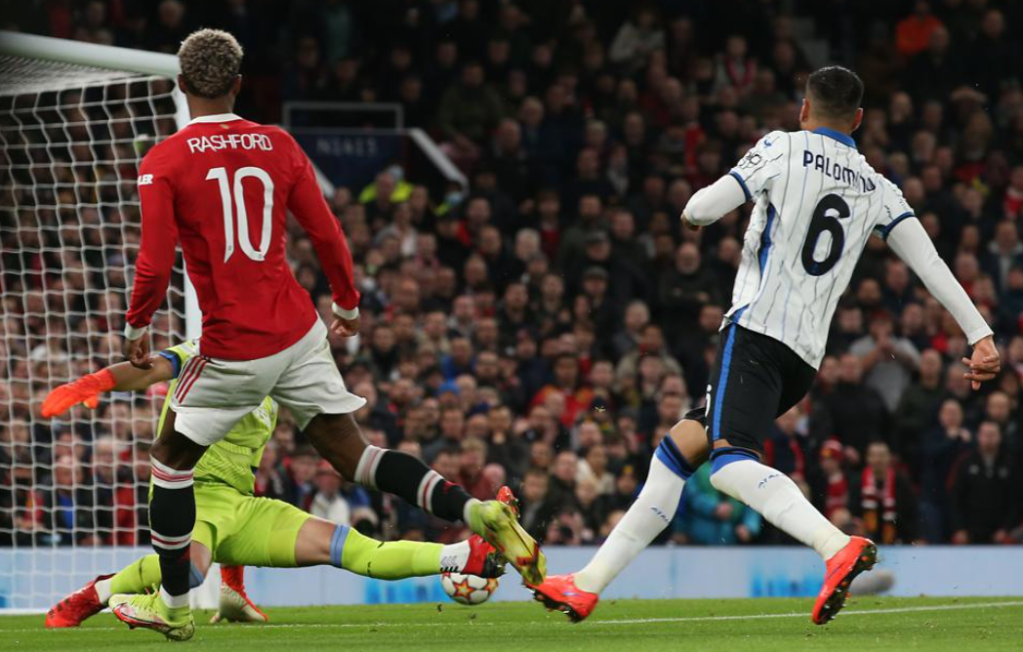 Pada awal babak pertama, Marcus Rashford yang baru pulih dari cedera nyaris mencetak gol ketika pada menit ketiga melepaskan tembakan ke arah gawang Atalanta. Tembakannya melebar dan Rashford dinyatakan offside. Ini penampilan perdana Rashford di kompetisi Eropa sejak final Liga Europa Mei 2021 lalu.