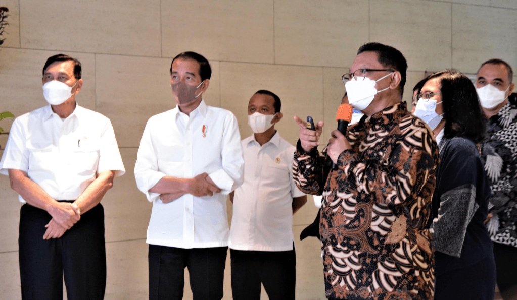 Dalam kunjungan tersebut, Presiden Joko Widodo didampingi para menteri, di antaranya Menteri Sekretaris Negara Pratikno, Menteri Investasi/Kepala Badan Koordinasi Penanaman Modal Bahlil Lahadalia, Menteri/Kepala Bappenas Suharso Monoarfa, Menteri Koordinator Kemaritiman dan Investasi Luhut Binsar Panjaitan, ditemani Gubernur Banten Wahidin Halim, Bupati Tangerang Ahmed Zaki Iskandar, dan Wali Kota Tangerang Selatan Benyamin Davnie.