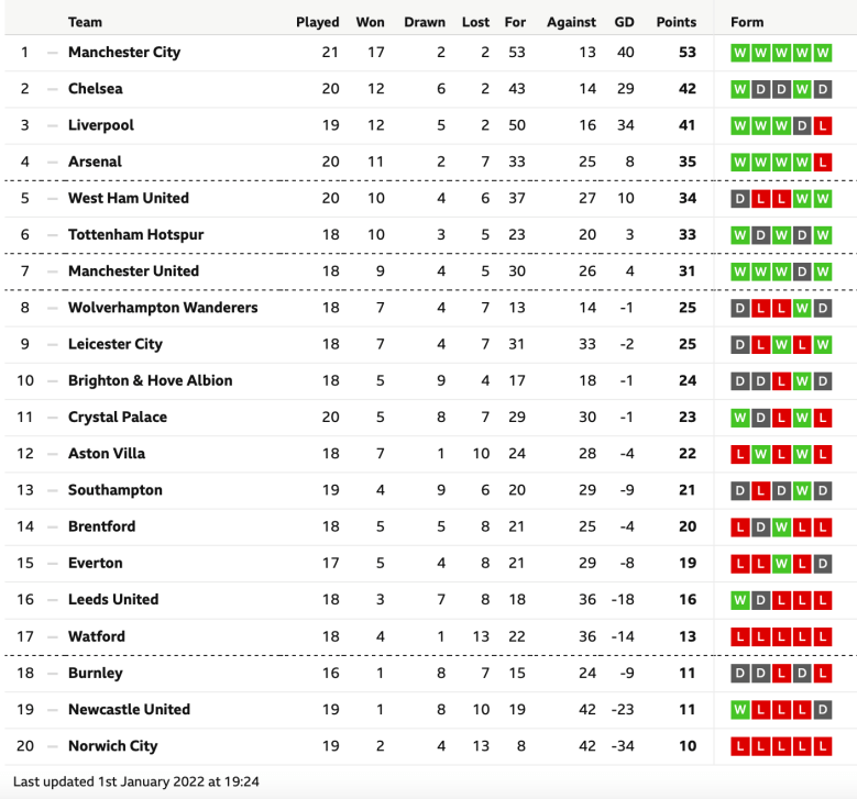 Manchester United pada Selasa 4 Januari 2022 dinihari WIB akan menjamu Wolverhampton Wanderers yang saat ini berada di posisi ke-8 klasemen Liga Premier (18 kali bertanding, 25 poin). Jika MU meraih tiga poin dari pertandingan ini, MU akan naik ke posisi ke-6 menggeser Spurs, dan bila jumlah gol MU lebih dari 6, MU bisa naik ke posisi ke-5 menggeser West Ham yang kini mengoleksi 34 poin.
