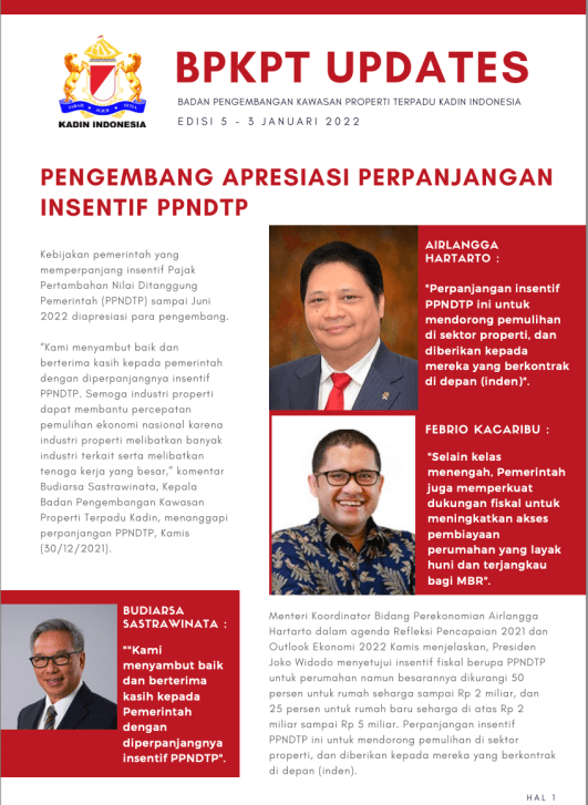 CATATAN: Tulisan ini dimuat di “BPKPT Updates”, newsletter Badan Pengembangan Kawasan Properti Terpadu Kadin, edisi ke-5, tanggal 3 Januari 2022.