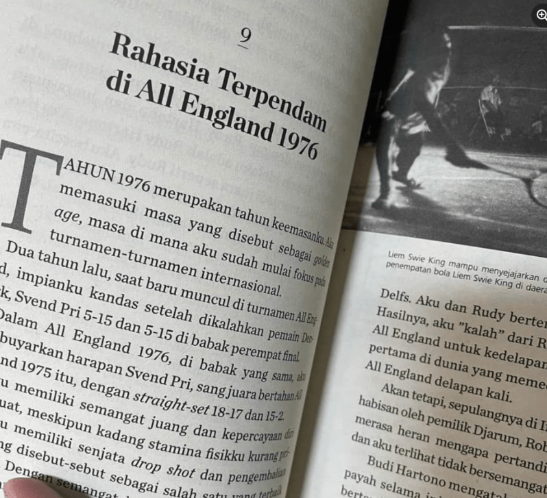 Salah-satunya adalah apa yang disebut penulis sebagai ‘Rahasia Terpendam’ pada final kejuaraan All England tahun 1976, saat dia dikalahkan Rudy Hartono.