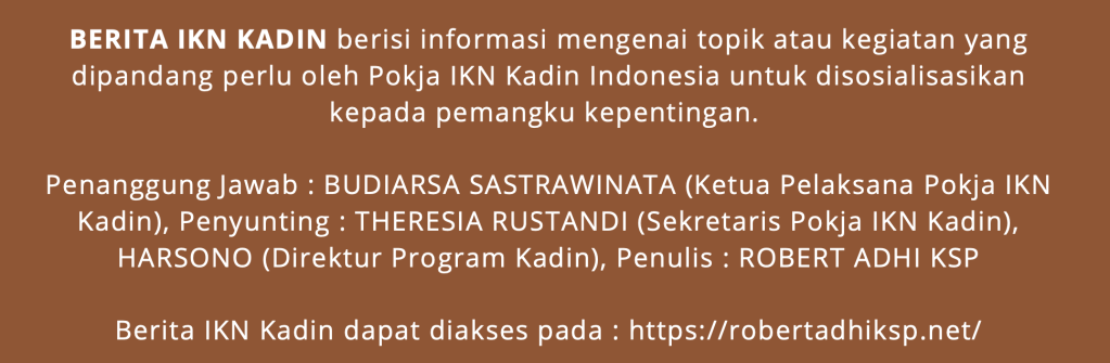 Demikian yang terungkap dalam acara “Sosialisasi Peluang Investasi di IKN” yang digelar Kelompok Kerja IKN Kadin Indonesia, Senin (22/8/2022) di Ciputra Artpreuneur, Jakarta Selatan. Acara ini dihadiri Ketua Otorita IKN Bambang Susantono, Wakil Ketua Otorita IKN Dhony Rahajoe, Ketua Umum Kadin Arsjad Rasjid, Ketua Kelompok Kerja (Pokja) IKN Kadin Budiarsa Sastrawinata, Ketua Dewan Penasehat Kadin Moh S Hidayat, dan sekitar 200-an pengusaha dan perwakilan perusahaan.