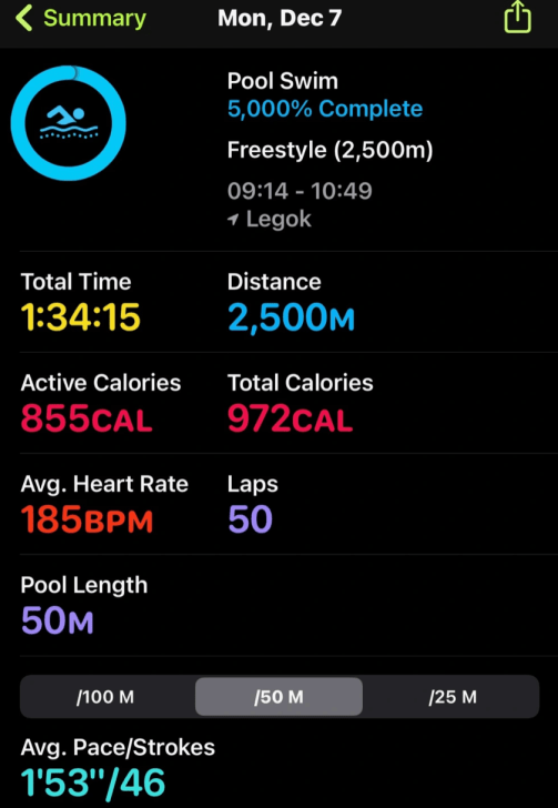 Sebelumnya, adikku pernah mengingatkanku untuk waspada melihat angka heart rate mencapai 190 bpm (saat berenang). “Angka HR-mu tidak normal,” katanya mengingatkan.