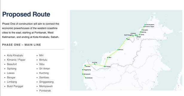 Perusahaan Brunei berencana membangun kereta cepat Trans Borneo sepanjang 1.620 kilometer yang melintasi tiga negara yaitu Brunei, Malaysia (Sarawak dan Sabah), dan Indonesia (Kalimantan Barat, Kalimantan Utara, Kalimantan Timur, dan Ibu Kota Nusantara IKN).